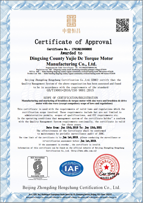 河北宇捷電機科技有限公司通過質(zhì)量管理體系認證 |