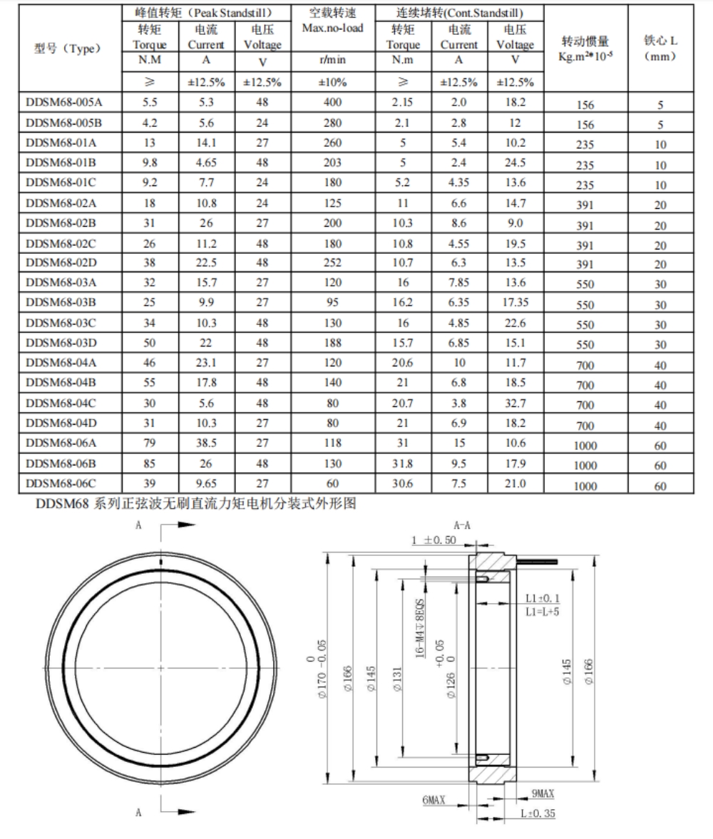 DDSM68系列無刷直流力矩電機